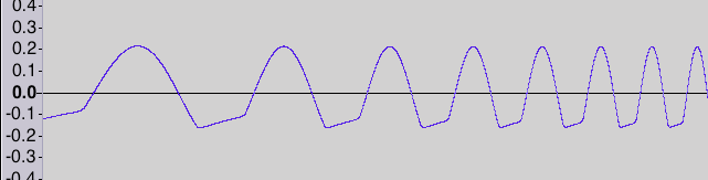 The next discovery was quite a bad shape of the output waves. As one can see, the sine wave is severely clipped at bottom half-waves. This is how the source -3 dBFS sine wave has been rendered: