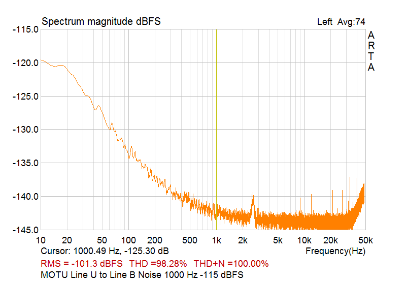 I also measured noise by sending 1 kHz test signal at -115 dBFS:
