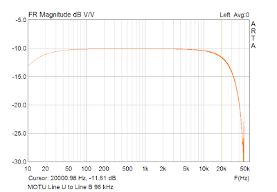 And now some re-measurements of my Soundcard Interface (SCI), this time made at 96 kHz sampling rate and with both ARTA and STEPS, so they are directly comparable to the MOTU loopback measurements.