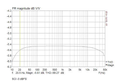 Once again, I retested the loopback between Microbook’s unbalanced line output and balanced line in. I used this combination because the devices that I plan to test have unbalanced (RCA) inputs, hence unbalanced line out needs to be used. While Millet’s Soundcard Interface has balanced connections to the sound card. So the output needs to be unbalanced, and the input balanced.