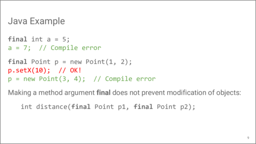 When passing a mutable object to another method, it’s not possible to specify using the Java language that the object is not going to be modified there. If the caller needs to be sure, it would be better to use an object of an immutable class.