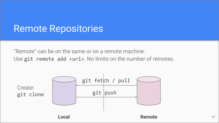 You never manipulate the contents of remote repositories directly. When you sync from a remote repository, all its objects and references get imported into your local repository, thus it effectively becomes a cache for remote data. After you’ve made any changes which means you have created new objects and changed references, these changes can be synced back to the remote using the same synchronization process.