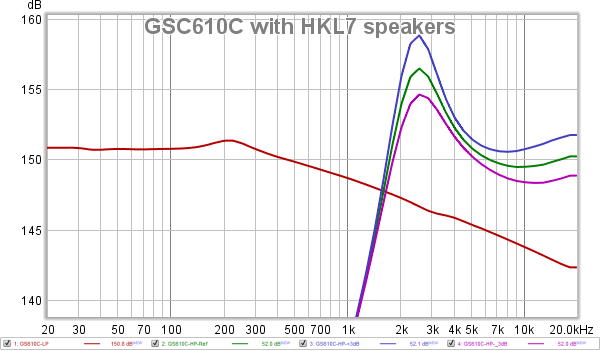 Here are the graphs of the electrical output from the GSC610C crossover when it’s connected to HKL7 speakers: