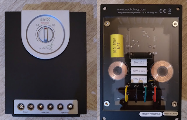 The other problem is that this crossover needs to be designed for use in an automobile, otherwise it could fall apart from vibration. I’ve found a company called AudioFrog which manufactures drives and passive crossovers for “hi-fi” auto installations. After looking at the specs of their drivers and comparing them to HKL7 drivers I decided to try AudioFrog’s GSC610C passive crossover.