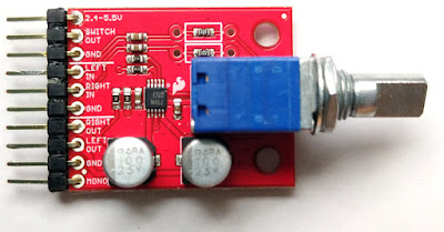 This is another IC amplifier from TI on a good quality breakout board by Sparkfun, which even includes a volume control. The IC is LM4853 amplifier chip (not just an op-amp). It can work either as a stereo amplifier, or as a mono amplifier in bridged mode.