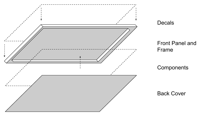 I used two identical ABS sheets for the front and the back panels. The frame is wooden and is attached permanently to the front panel. The toy is sturdy, if not a bit heavy. The ABS sheets are black, I needed to make them look friendly for a child, so I used self-adhesive films and some decals to make them look attractive for a kid. Film also covers the holes and heads of the screws used to attach the components.